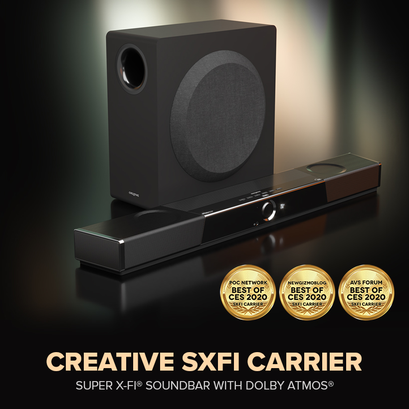 Creative SXFI CARRIER heralds a new dimension in Dolby Atmos® soundbar technology with built-in Super X-Fi® Spatial Holography to create a new multi-speaker cinema experience on headphones. The SXFI CARRIER carries on the engineering marvel of the award-winning Sonic Carrier which has been dubbed by industry experts as the “soundbar of the gods”.